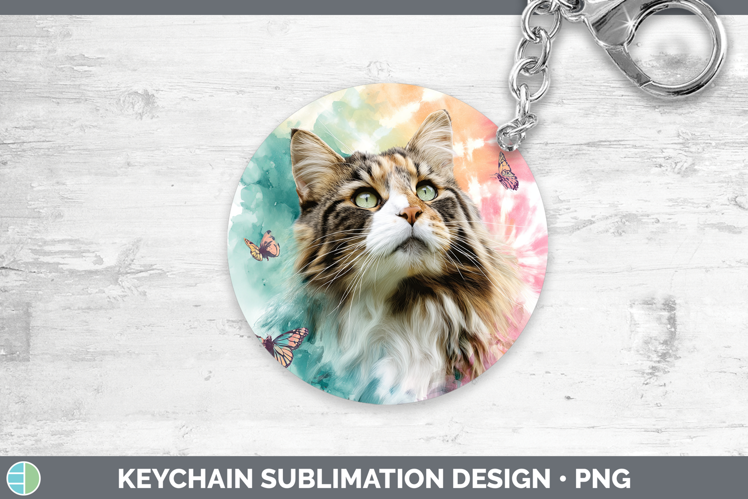 Norwegian Forest Cats Tie Dye Keychain Sublimation Design