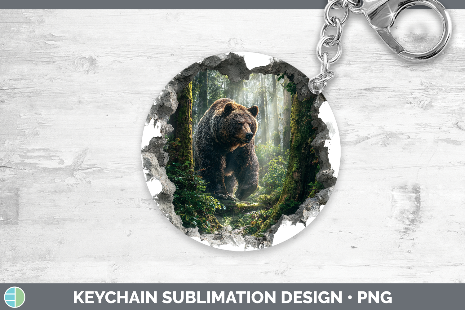 Grizzly Bear Woodland 3D Hole Keychain Sublimation Design