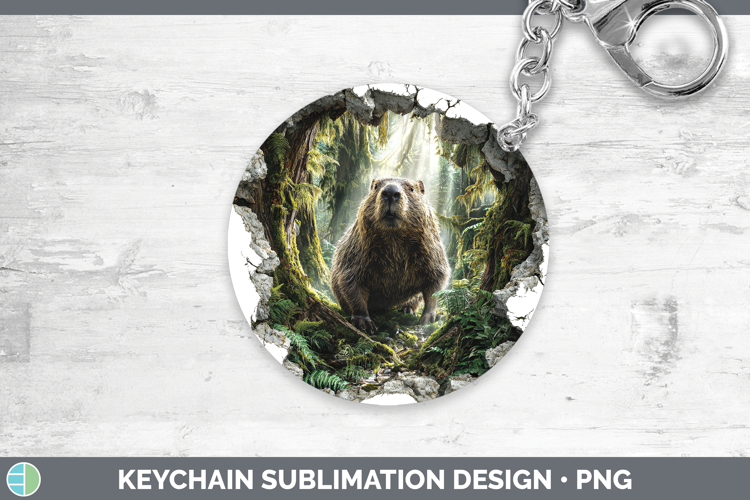 Beaver Woodland 3D Hole Keychain Sublimation Design