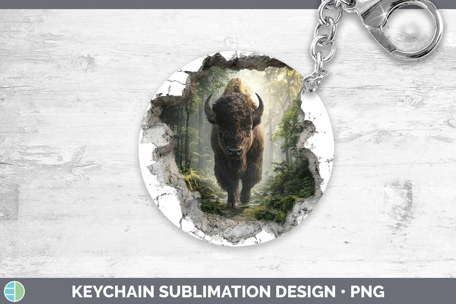Bison Woodland 3D Hole Keychain Sublimation Design
