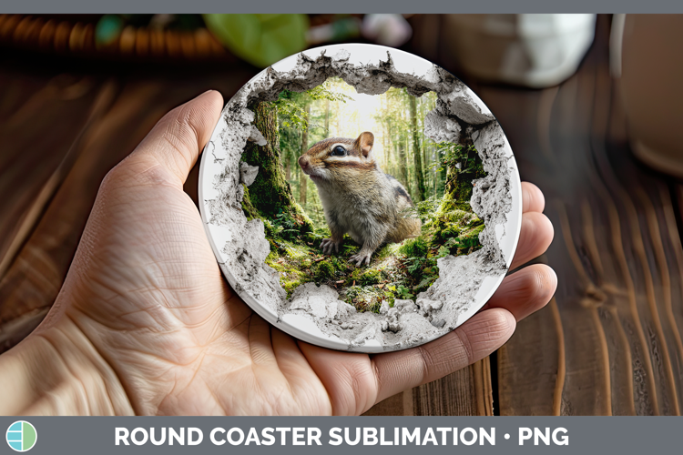 Chipmunk Woodland 3D Hole Round Coaster Sublimation Design