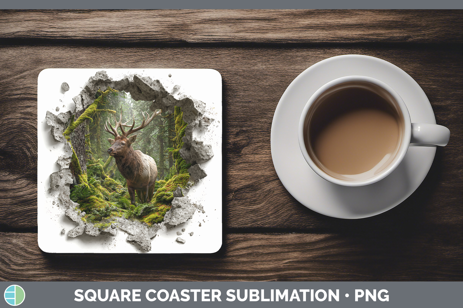 Elk Woodland 3D Hole Square Coaster Sublimation Design