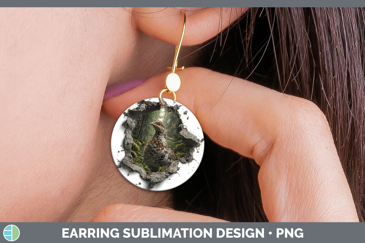 Grouse Woodland 3D Hole Round Earrings Sublimation Design example image 1