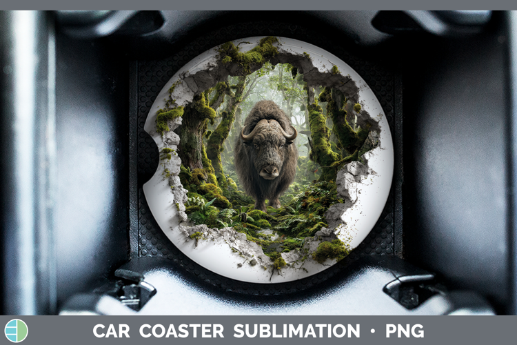 Musk Ox Woodland 3D Hole Car Coaster Sublimation Design
