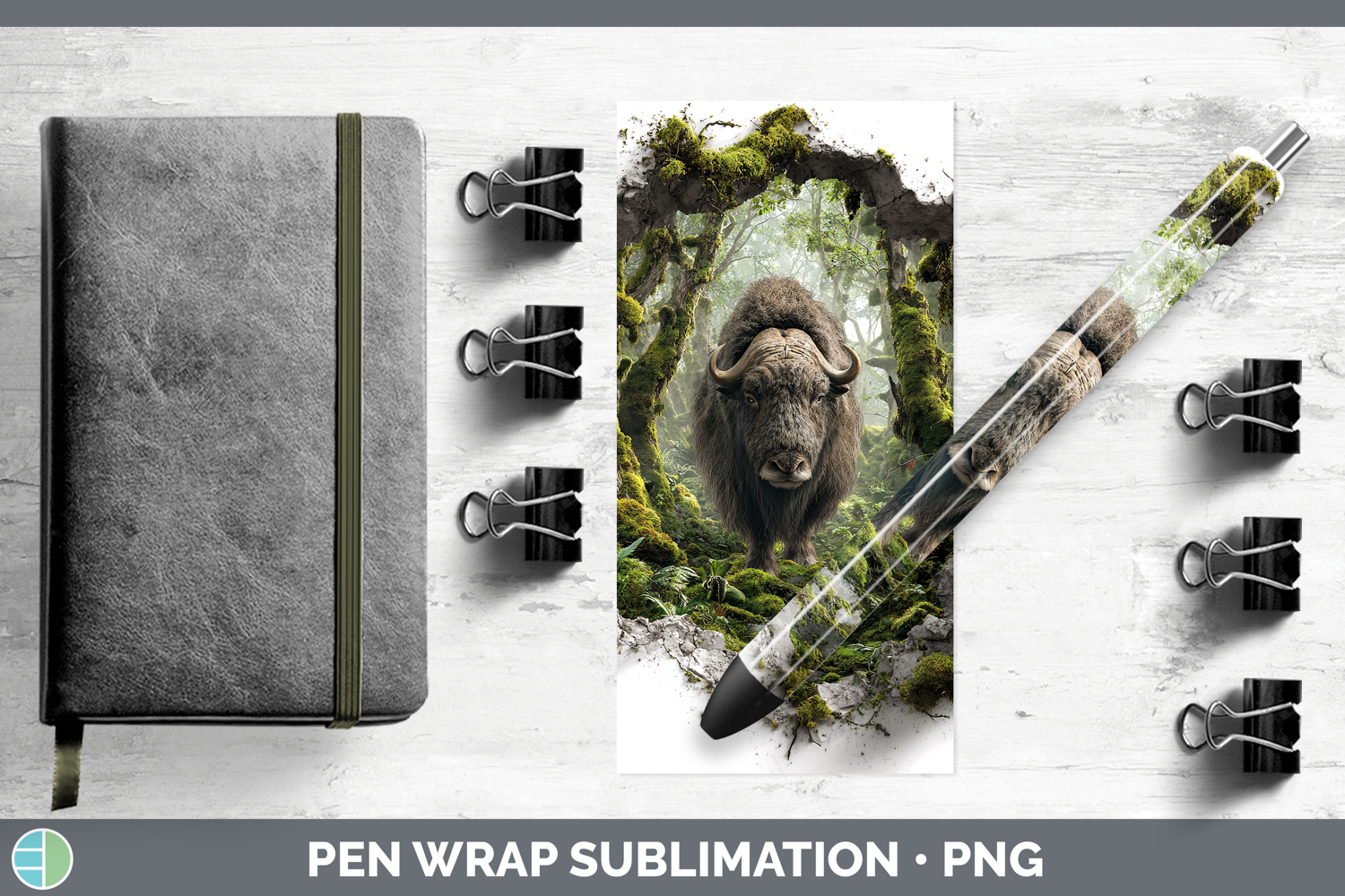 Musk Ox Woodland 3D Hole Pen Wrap Sublimation Design