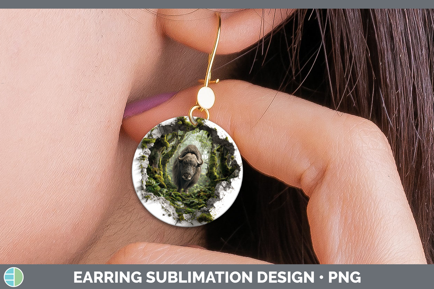 Musk Ox Woodland 3D Hole Round Earrings Sublimation Design