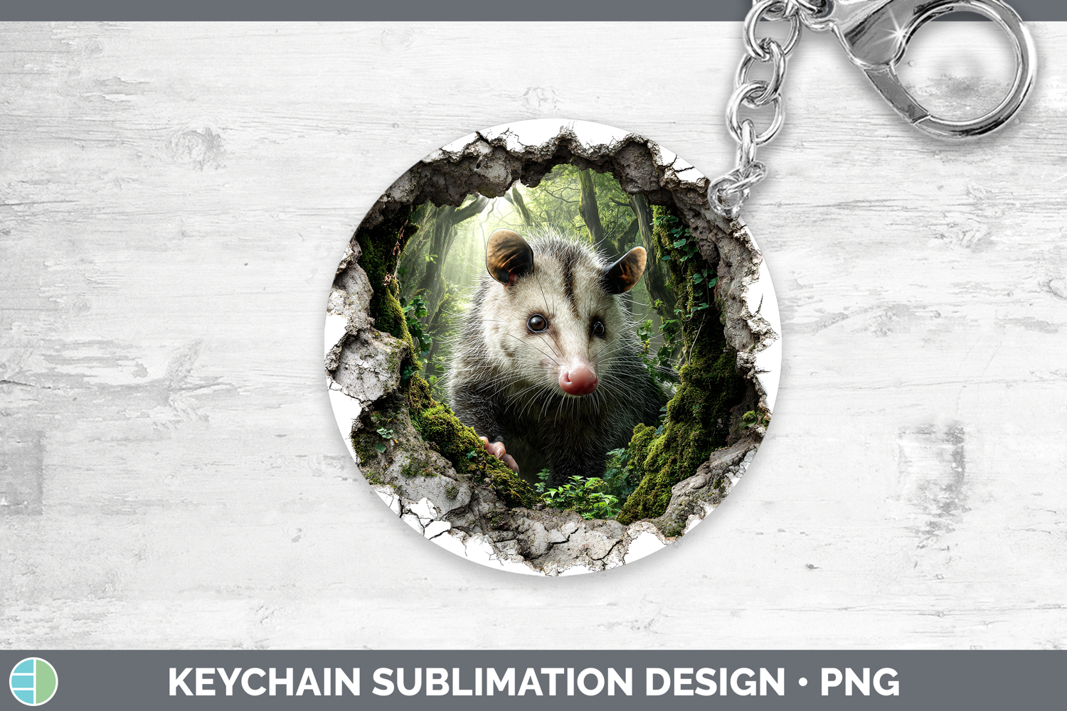 Opossum Woodland 3D Hole Keychain Sublimation Design