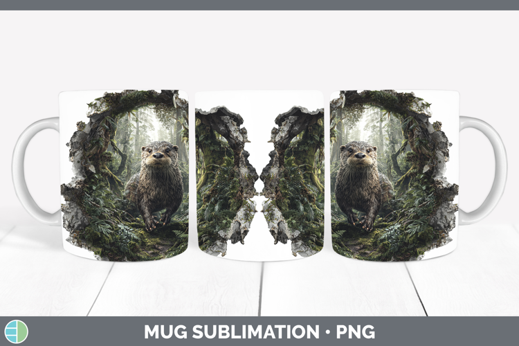 Otter Woodland 3D Hole Mug Wrap Sublimation Design