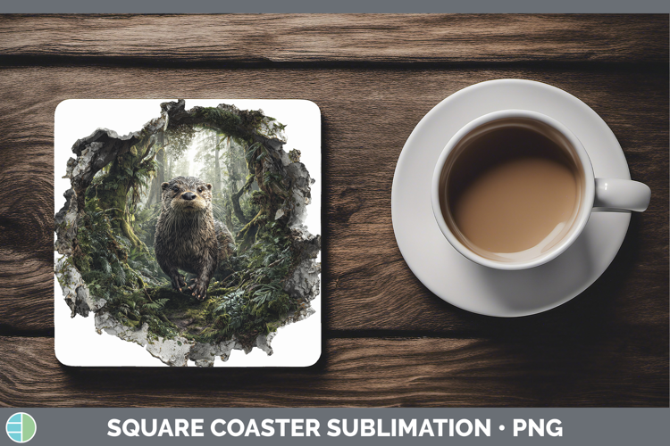 Otter Woodland 3D Hole Square Coaster Sublimation Design