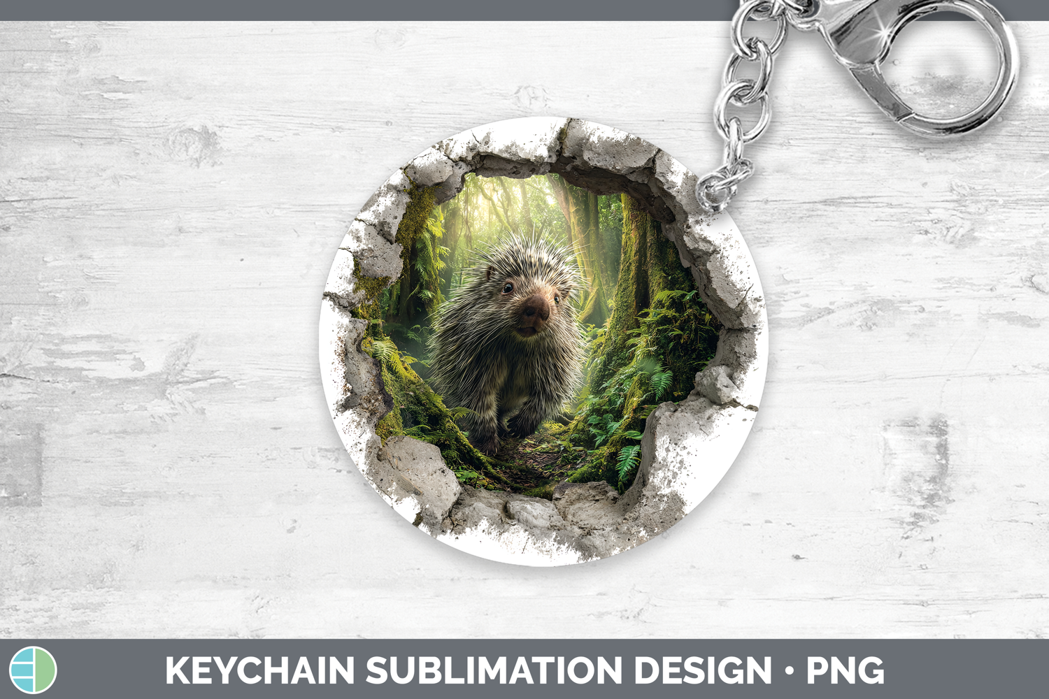 Porcupine Woodland 3D Hole Keychain Sublimation Design