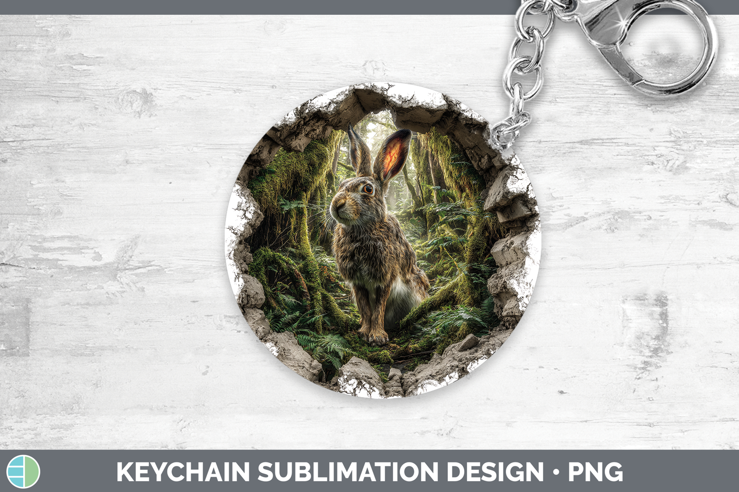 Snowshoe Hare Woodland 3D Hole Keychain Sublimation Design