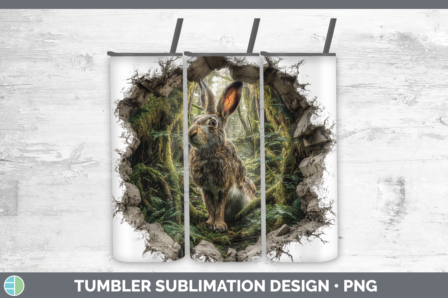 Snowshoe Hare Woodland 3D Hole Tumbler Sublimation Design