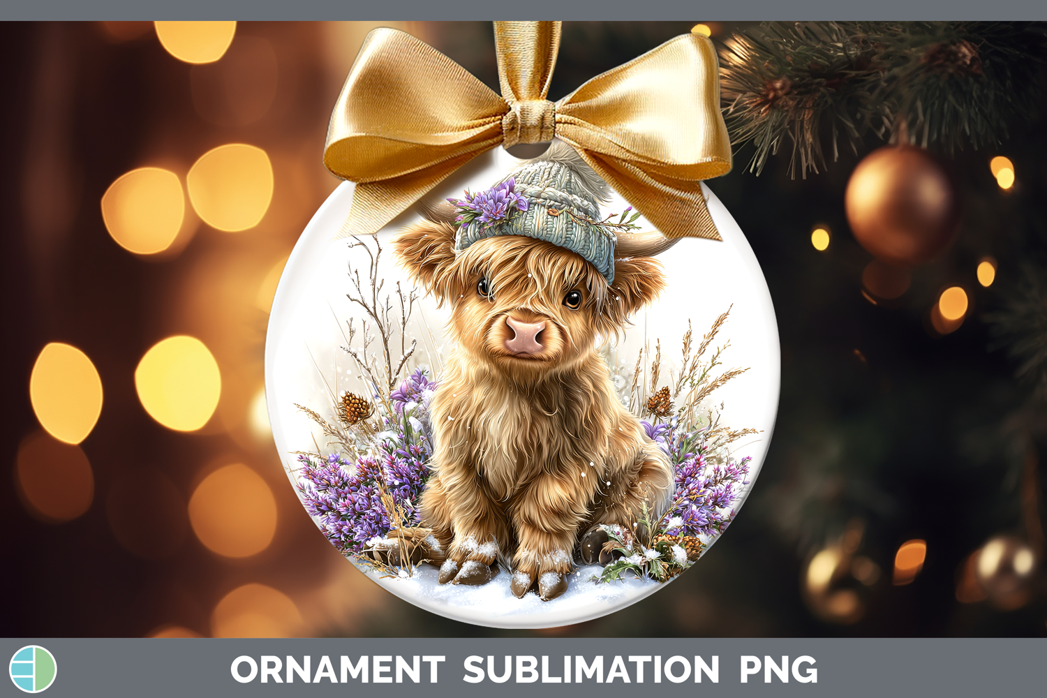Similar Design Products to Highland Cow Farm Winter Knit Hat Ornament Sublimation Desig