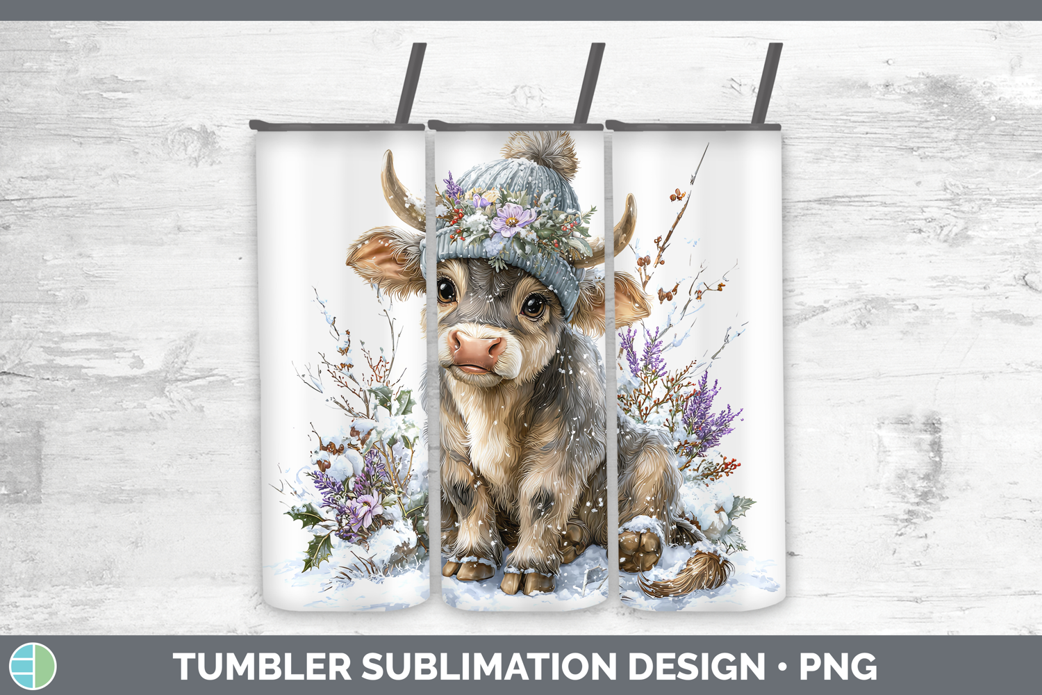 Bull Farm Winter Knit Hat Tumbler Sublimation Design
