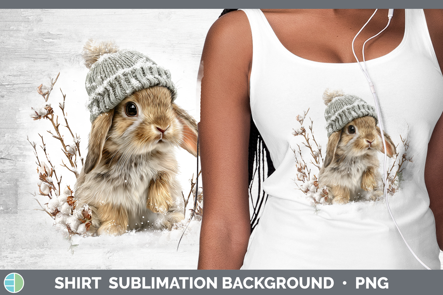 Bunny Farm Winter Knit Hat Shirt Sublimation Design