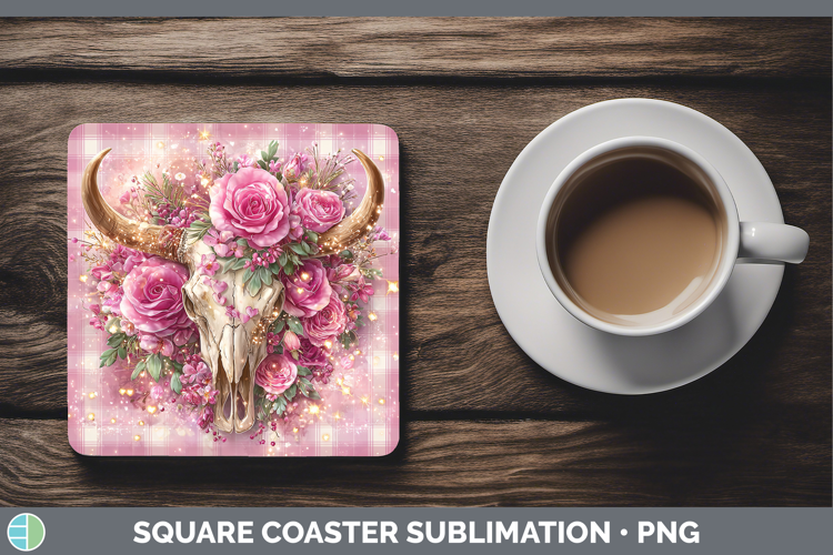 Cow Skull Checker Valentine Square Coaster Sublimation Desig