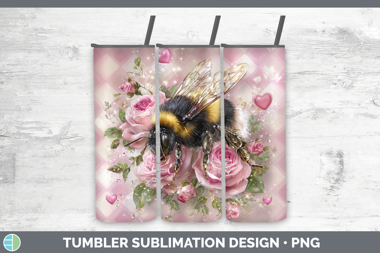 Bee Checker Valentine Tumbler Sublimation Design