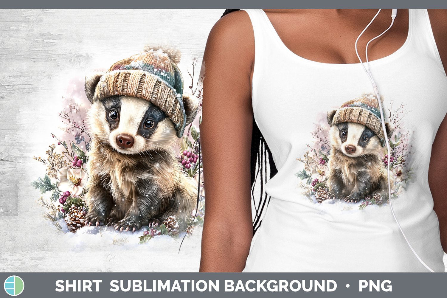 Badger Woodland Winter Knit Hat Shirt Sublimation Design