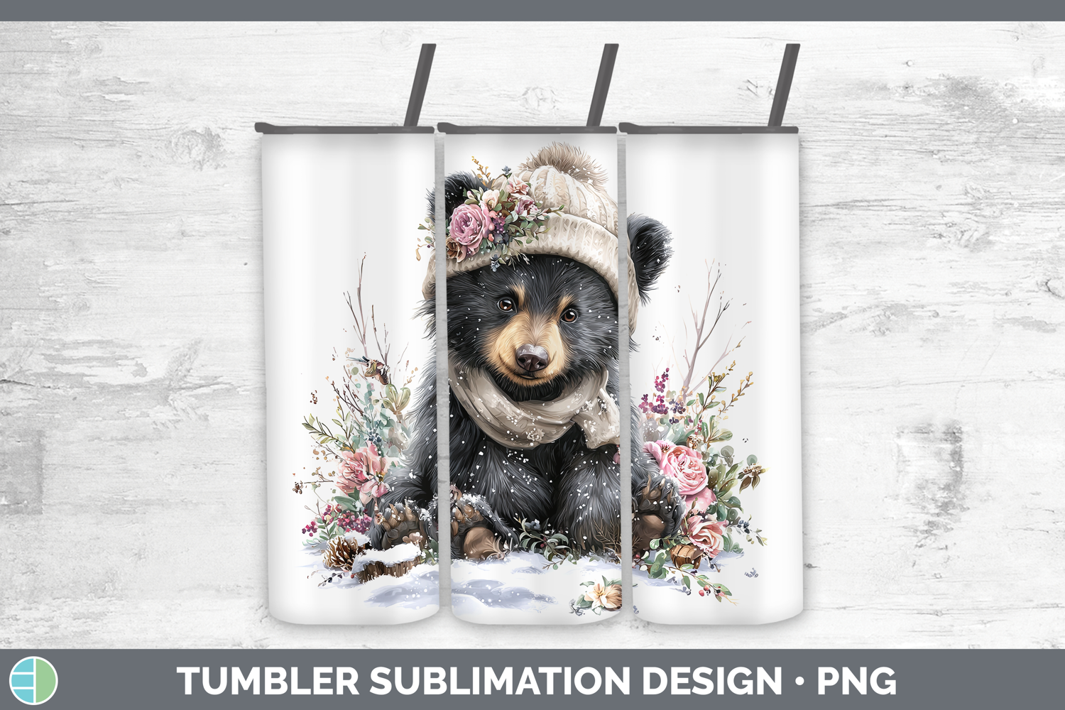Black Bear Woodland Winter Knit Hat Tumbler Sublimation Desi