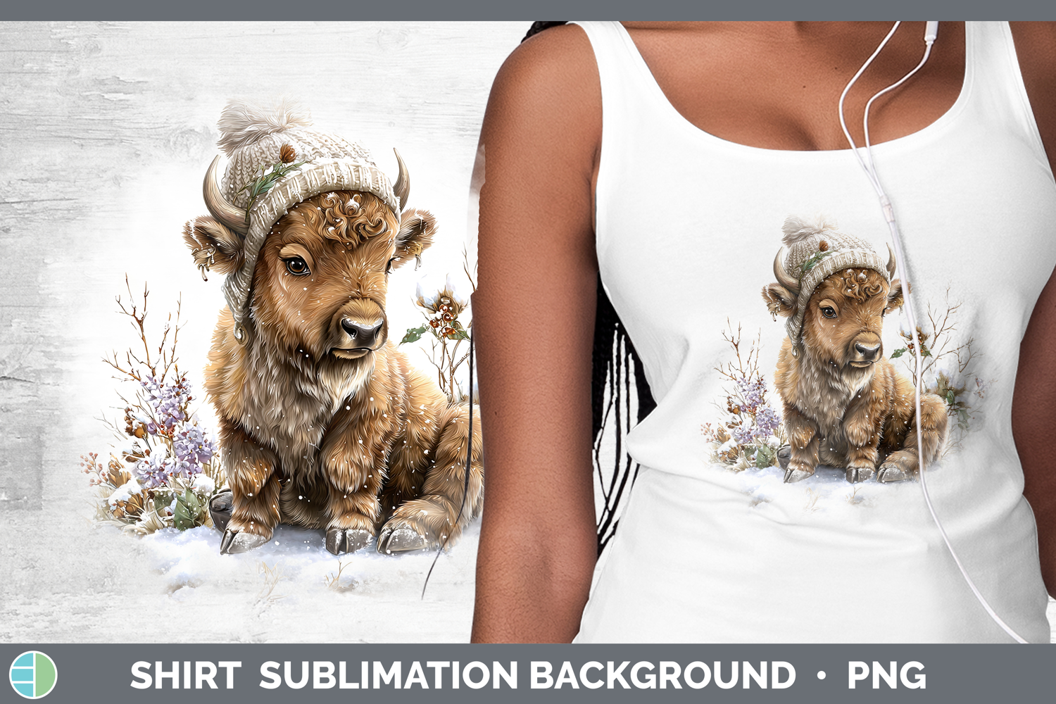 Bison Woodland Winter Knit Hat Shirt Sublimation Design