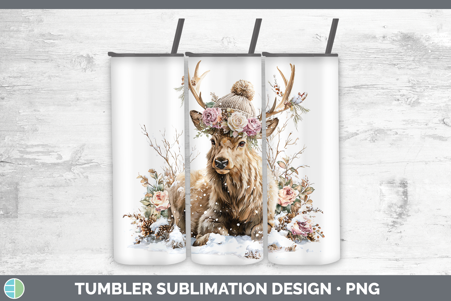 Elk Woodland Winter Knit Hat Tumbler Sublimation Design