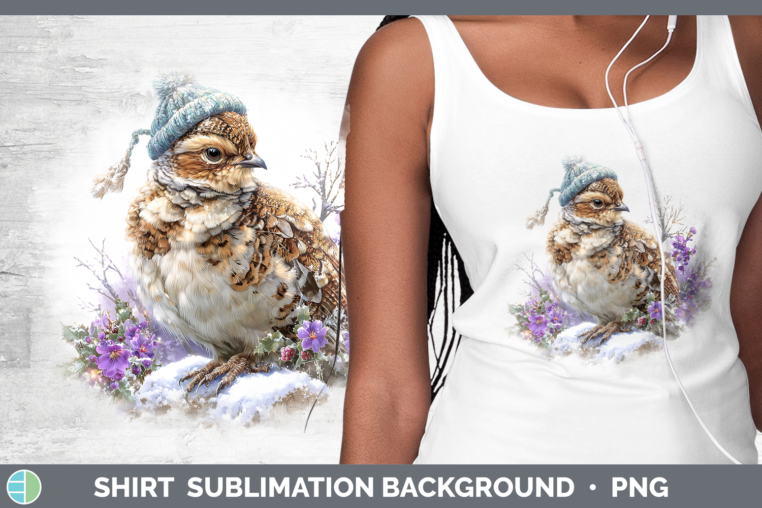 Grouse Woodland Winter Knit Hat Shirt Sublimation Design