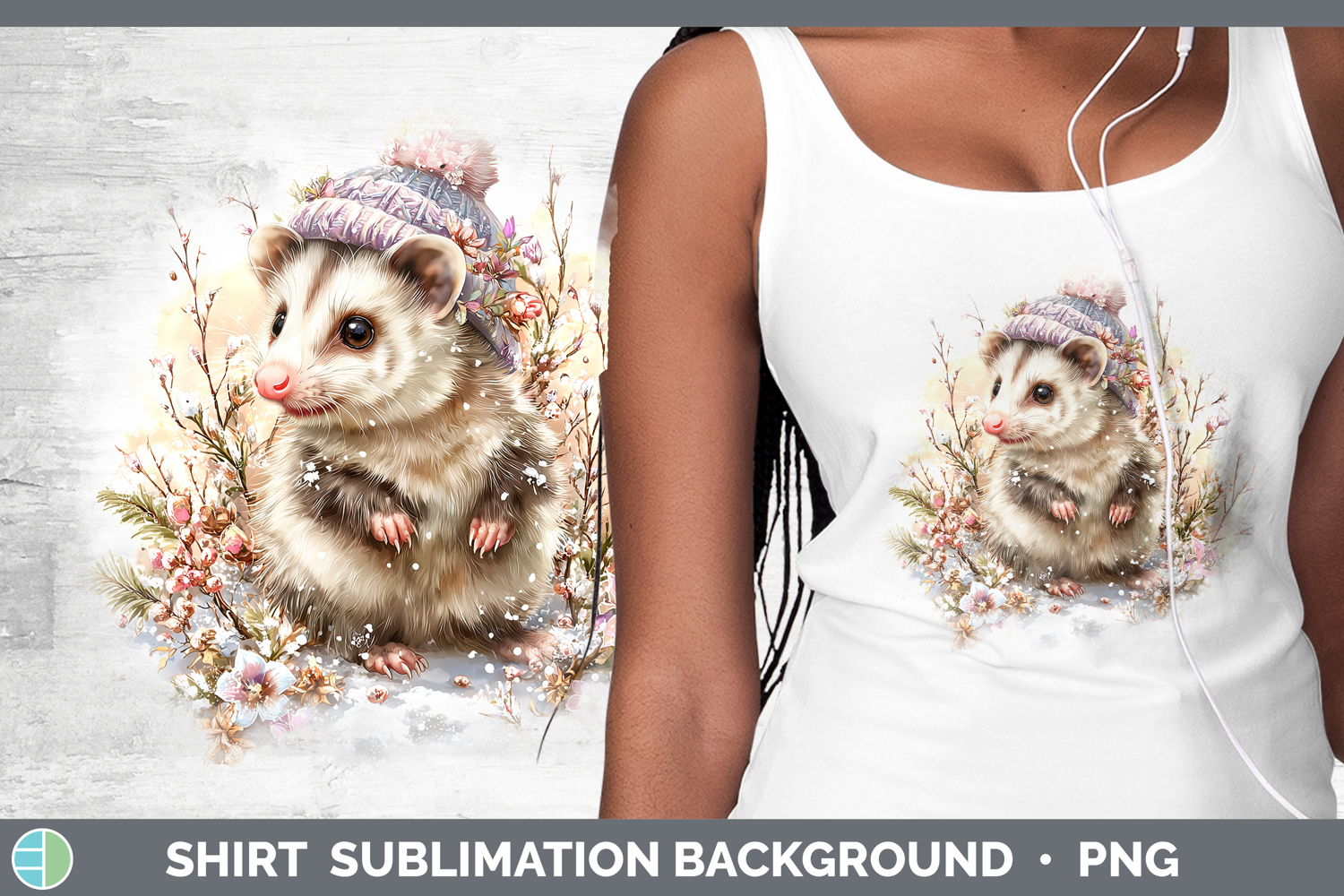 Opossum Woodland Winter Knit Hat Shirt Sublimation Design