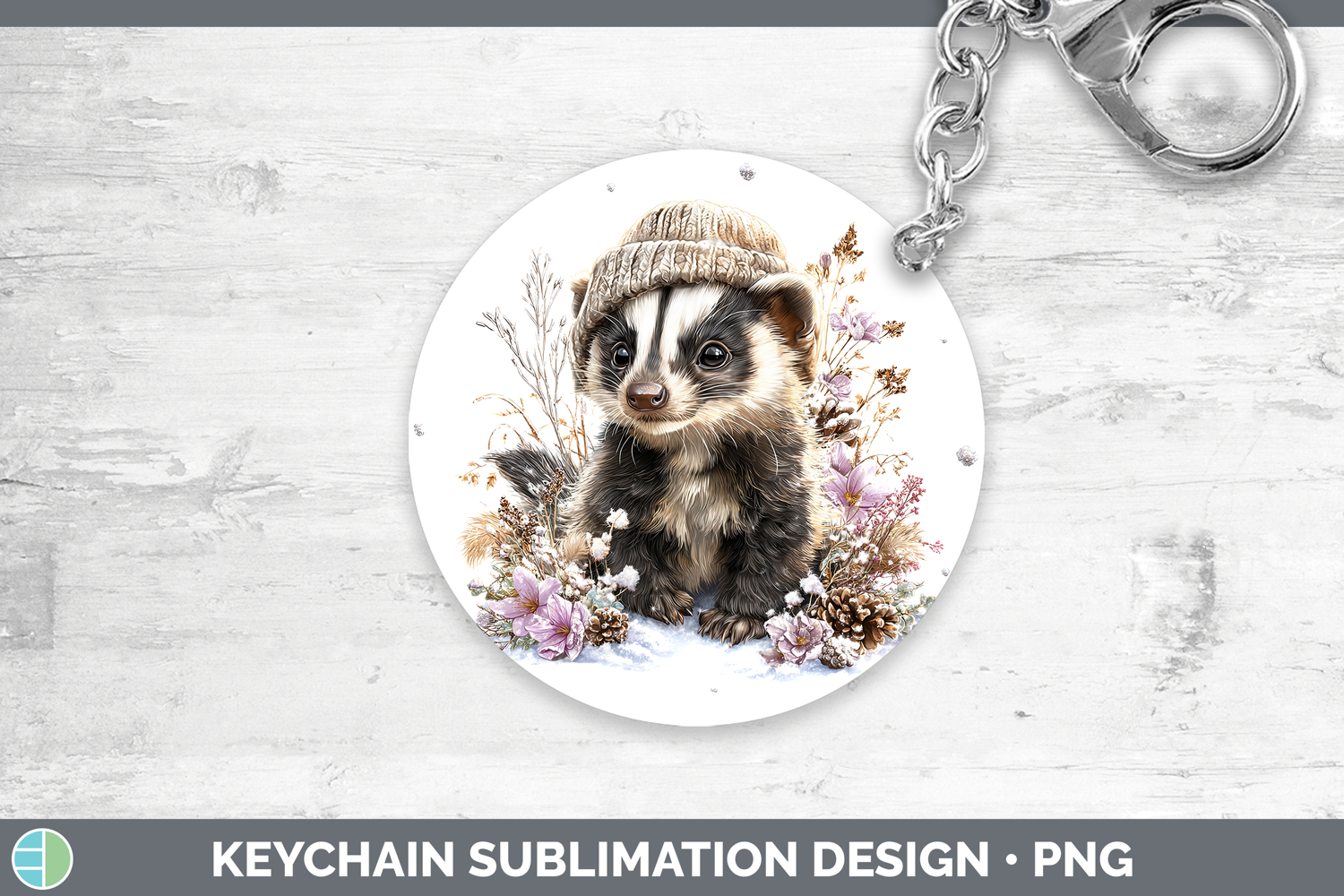 Similar Design Products to Skunk Woodland Winter Knit Hat Keychain Sublimation Design