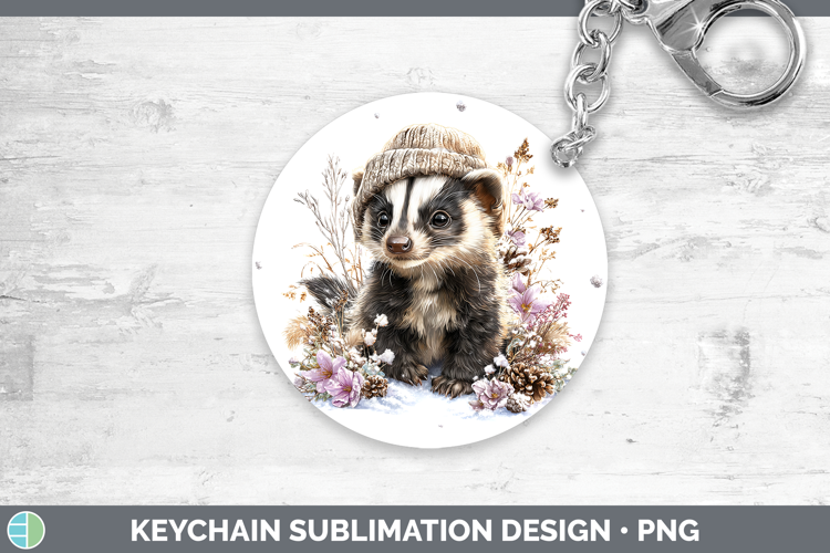Skunk Woodland Winter Knit Hat Keychain Sublimation Design