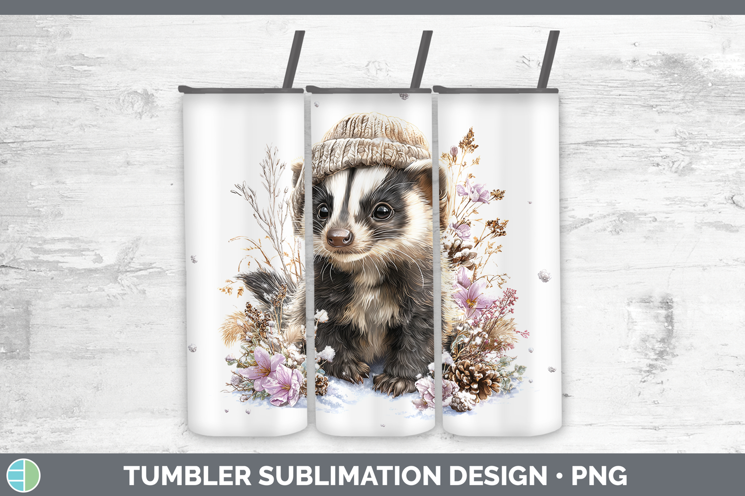 Skunk Woodland Winter Knit Hat Tumbler Sublimation Design