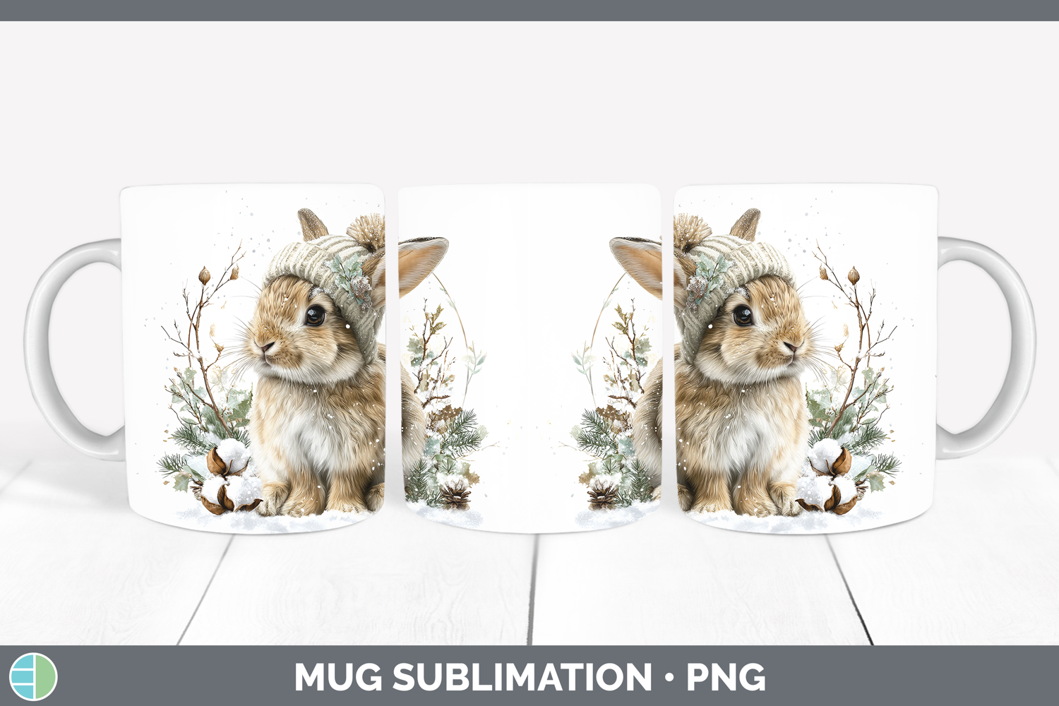 Similar Design Products to Snowshoe Hare Woodland Winter Knit Hat Mug Wrap Sublimation