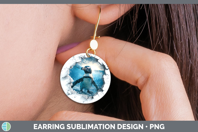 Penguin Sea 3D Hole Round Earrings Sublimation Design