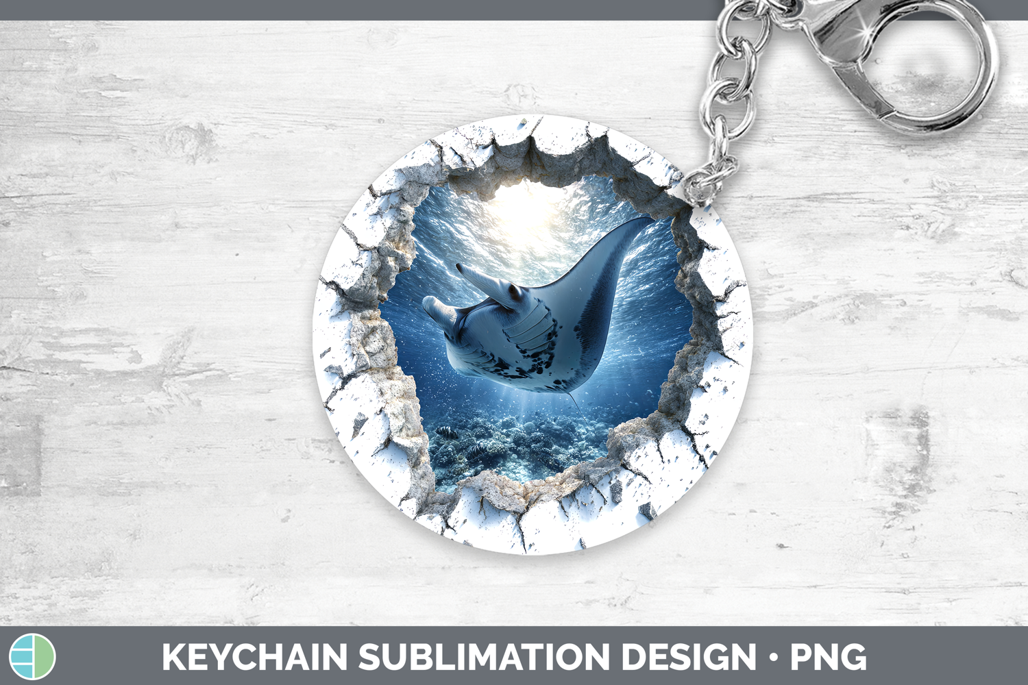 Manta Ray Sea 3D Hole Keychain Sublimation Design