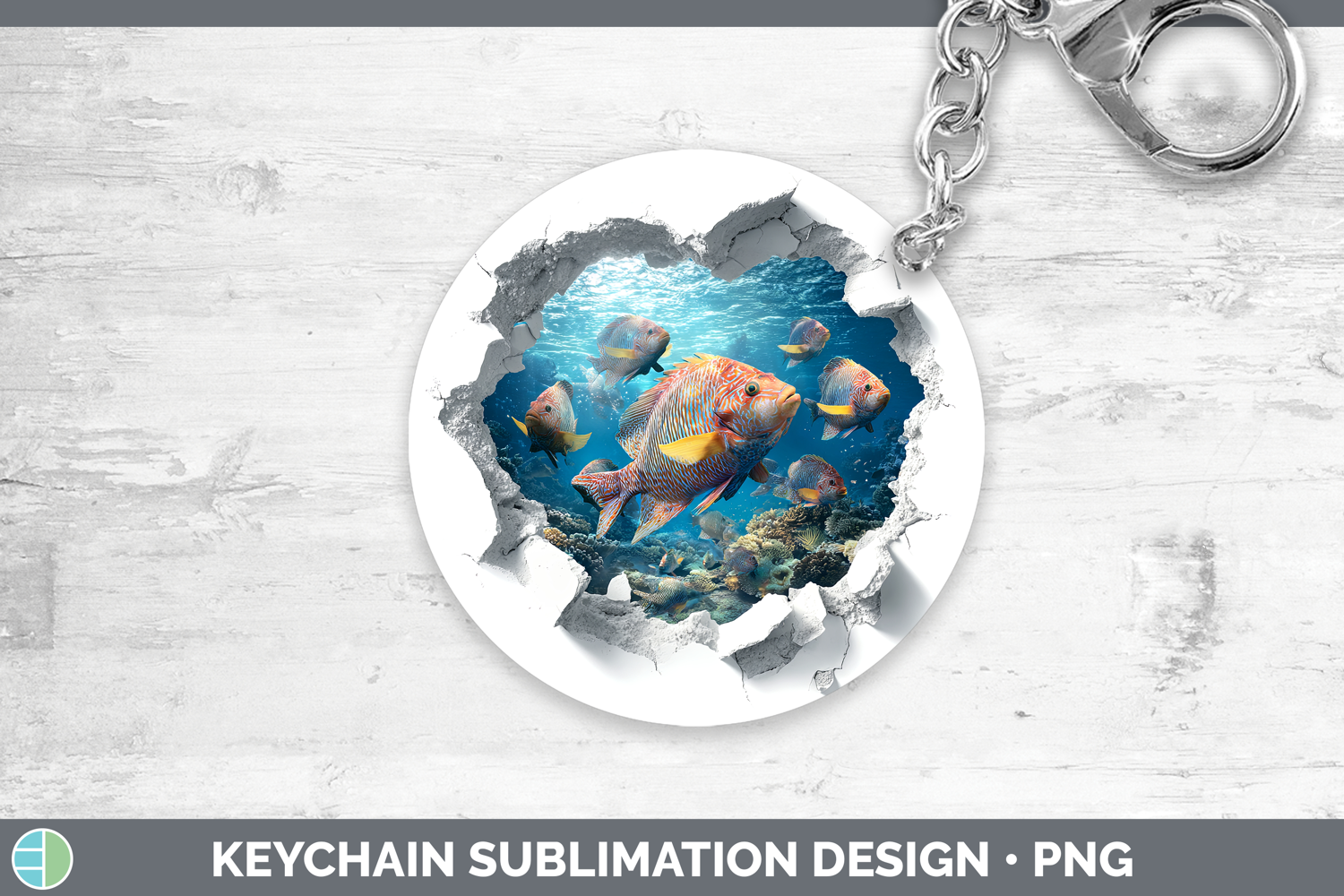 Tropical Fish Sea 3D Hole Keychain Sublimation Design