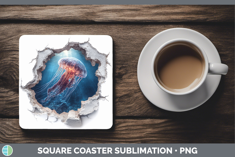 Jellyfish Sea 3D Hole Square Coaster Sublimation Design