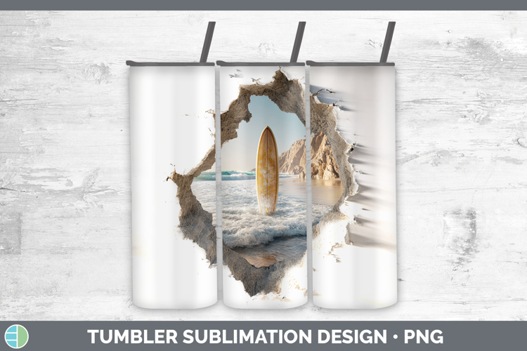 Surfboard Sea 3D Hole Tumbler Sublimation Design