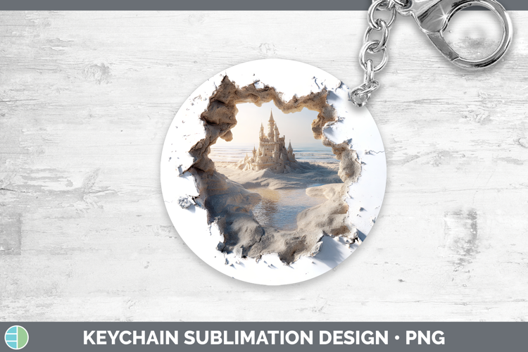 Sand Castle Sea 3D Hole Keychain Sublimation Design