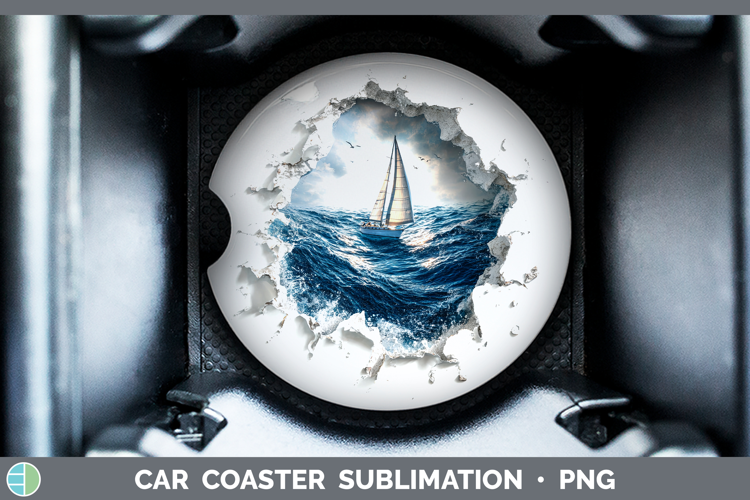 Sailboat Sea 3D Hole Car Coaster Sublimation Design