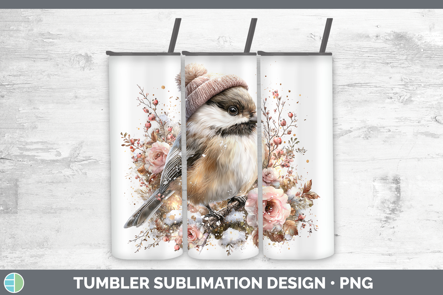 Chickadee Birds 01 Winter Knit Hat Tumbler Sublimation Desig