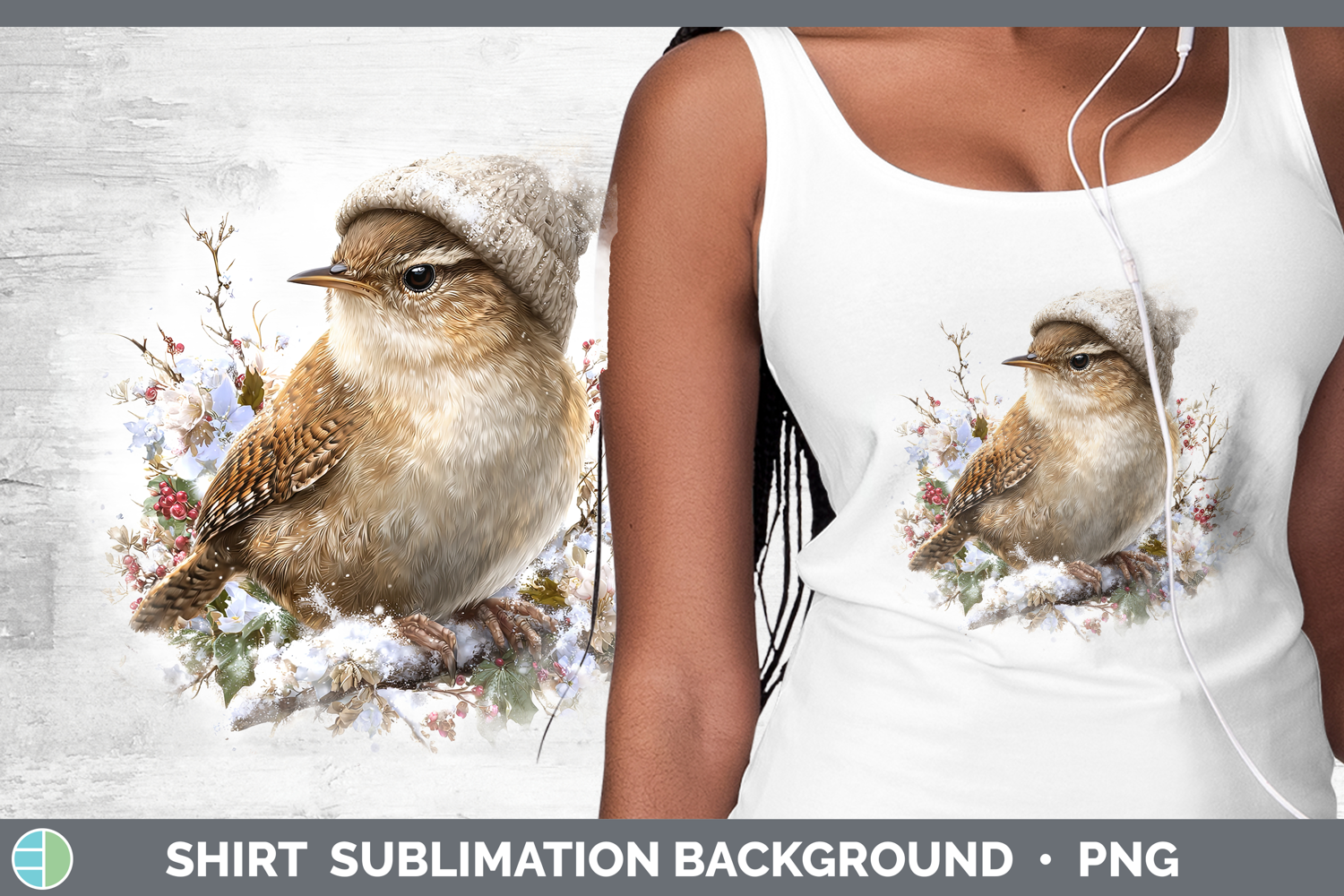 Wren Birds 01 Winter Knit Hat Shirt Sublimation Design