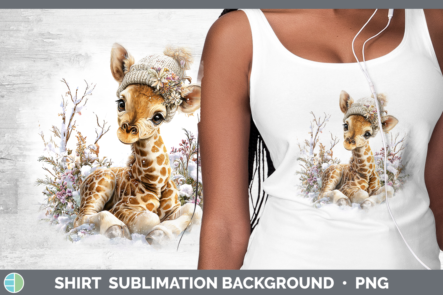 Giraffe Safari Winter Knit Hat Shirt Sublimation Design