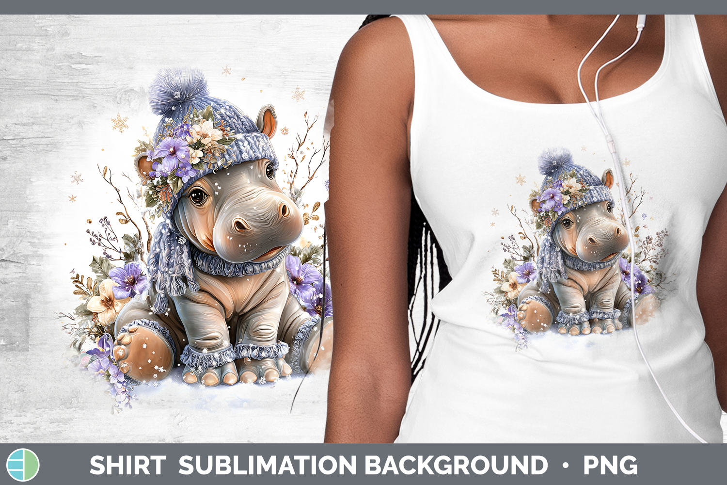 Hippo Safari Winter Knit Hat Shirt Sublimation Design