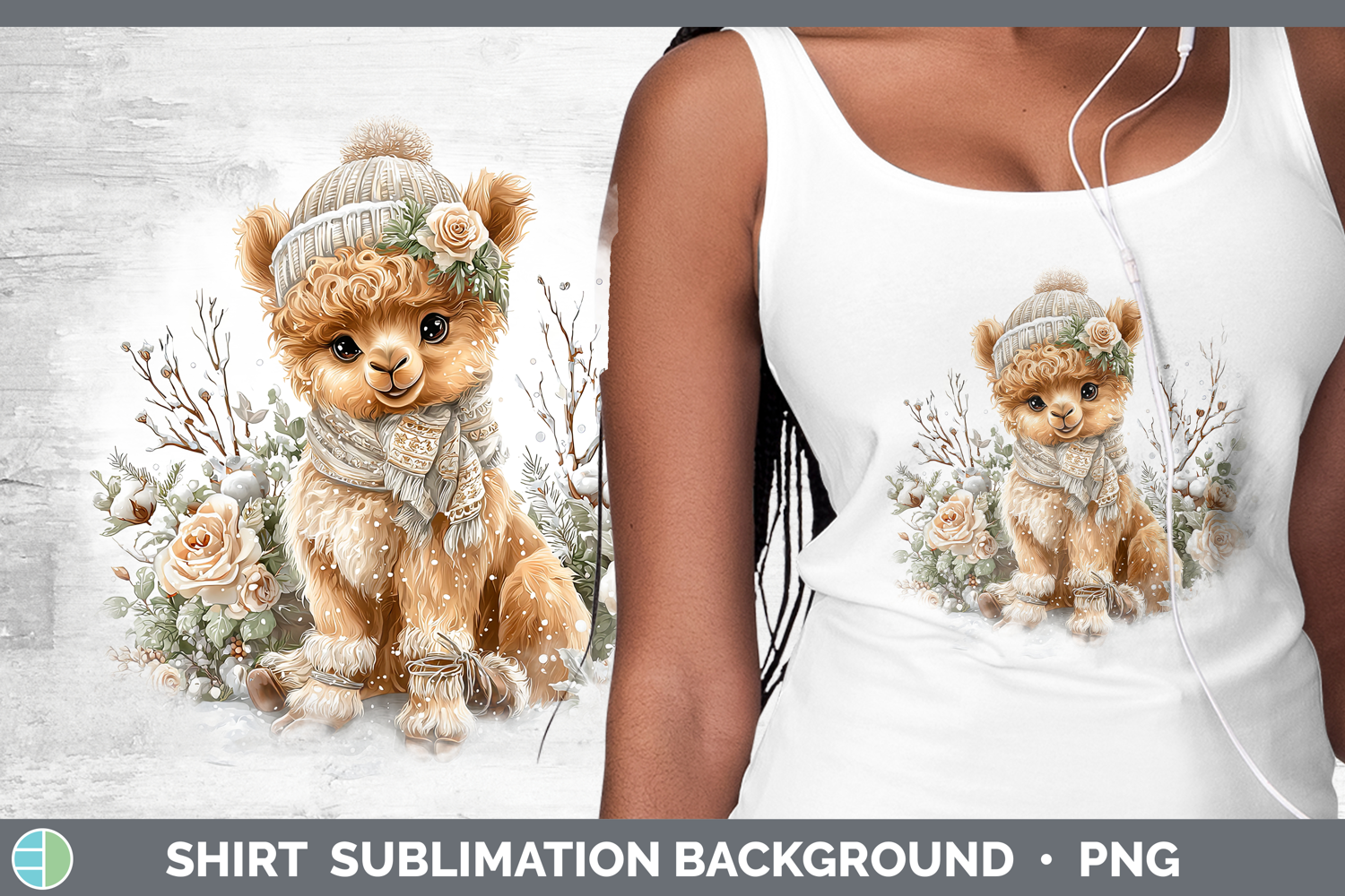 Camel Safari Winter Knit Hat Shirt Sublimation Design