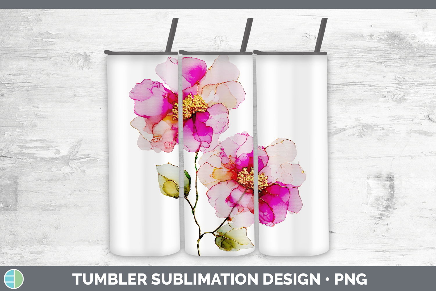 GorgeousFlowers 02 Alcohol Ink Tumbler design.