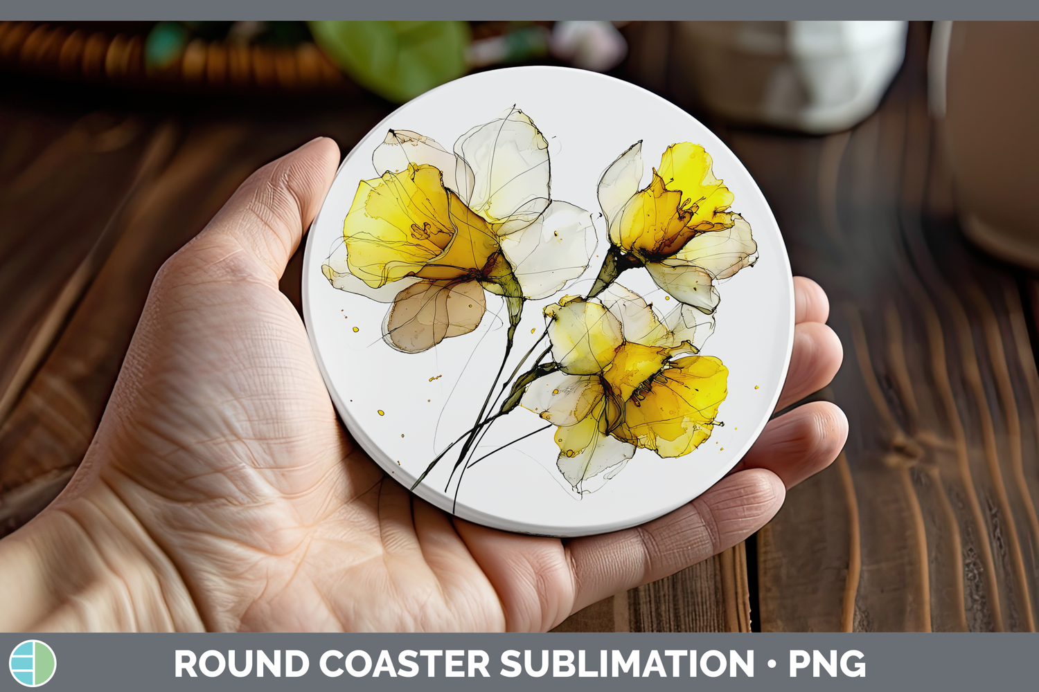 Daffodil Flowers 02 Alcohol Ink Round Coaster Sublimation De