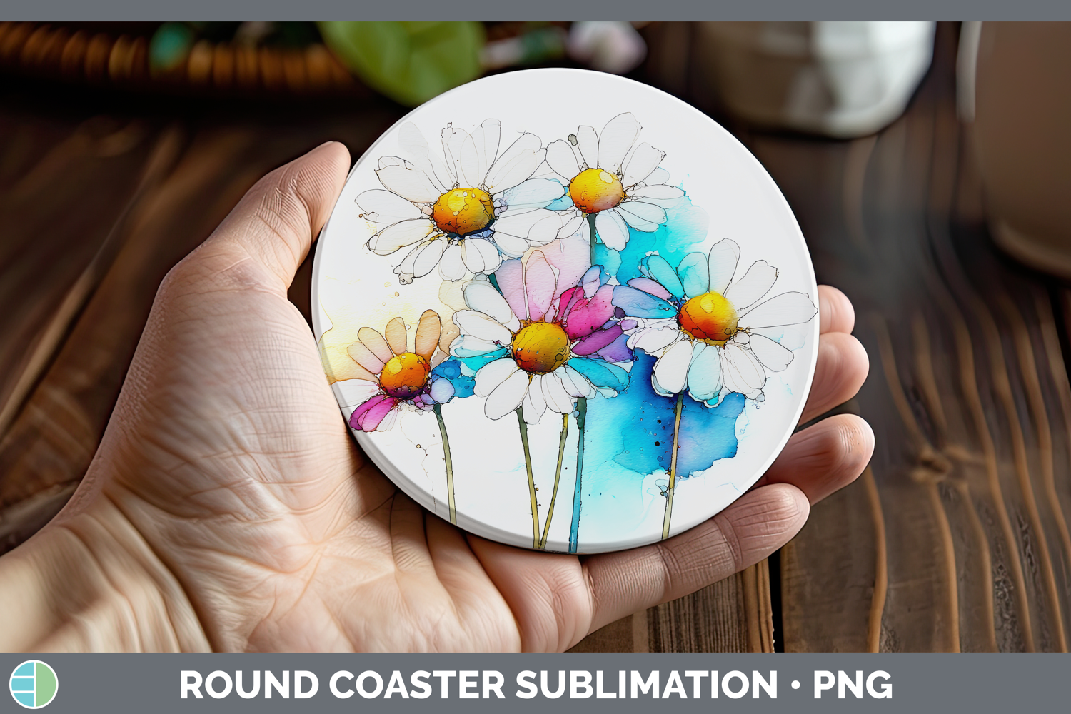 Similar Design Products to Daisy Flowers 02 Alcohol Ink Round Coaster Sublimation Desig