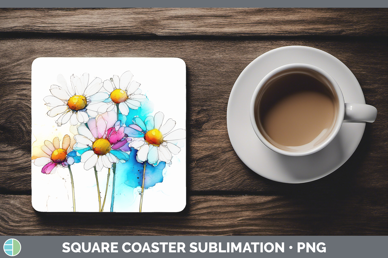 Daisy Flowers 02 Alcohol Ink Square Coaster Sublimation Desi