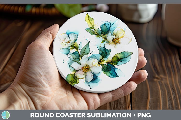 Gardenia Flowers 02 Alcohol Ink Round Coaster Sublimation De