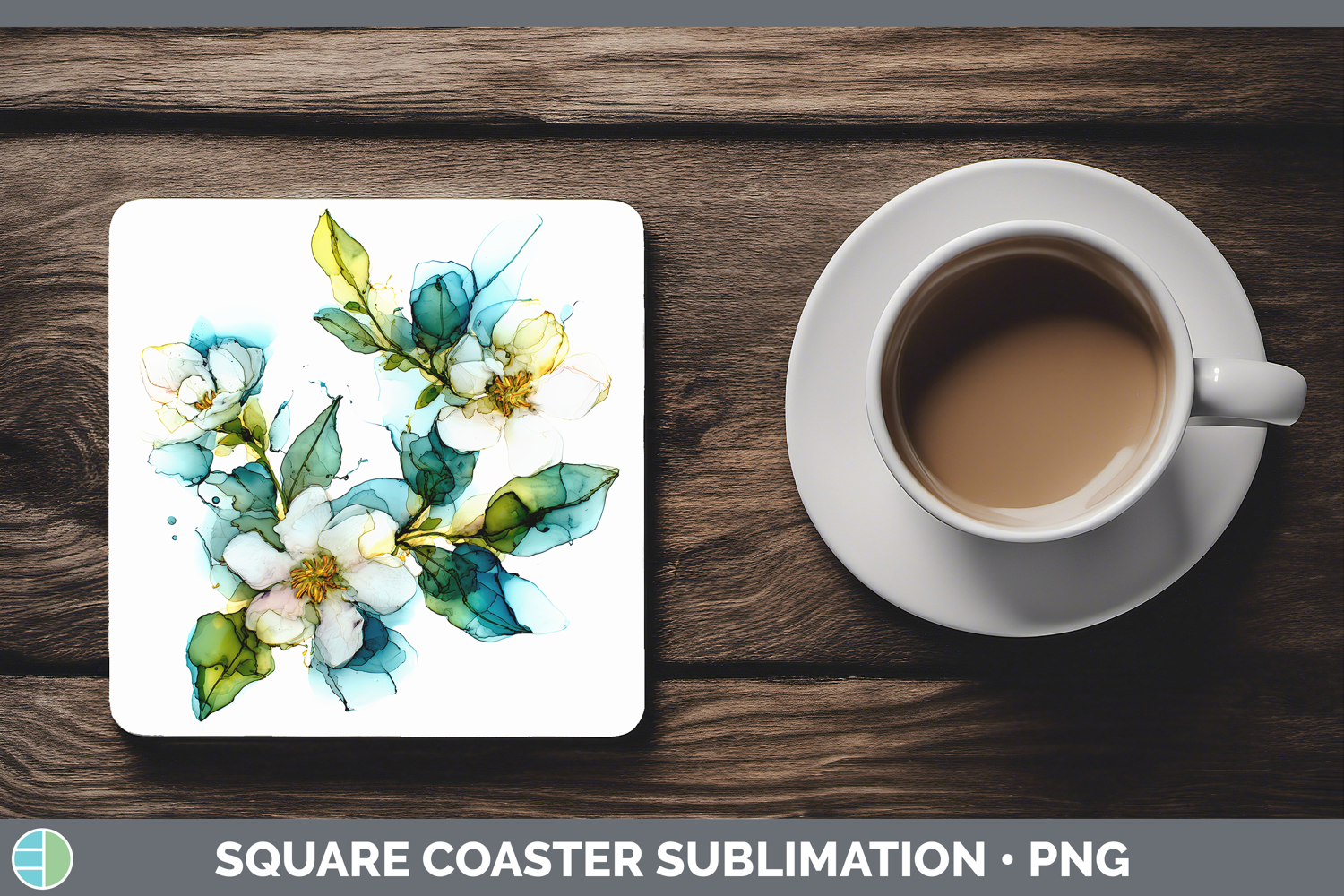 Gardenia Flowers 02 Alcohol Ink Square Coaster Sublimation D