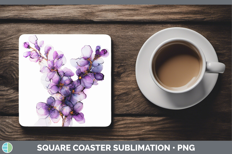Lilac Flowers 02 Alcohol Ink Square Coaster Sublimation Desi